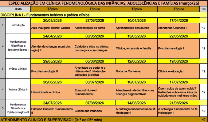 ESPECIALIZAÇÃO EM CLÍNICA FENOMENOLÓGICA DAS INFÂNCIAS, ADOLESCÊNCIAS, CASAIS E FAMÍLIAS